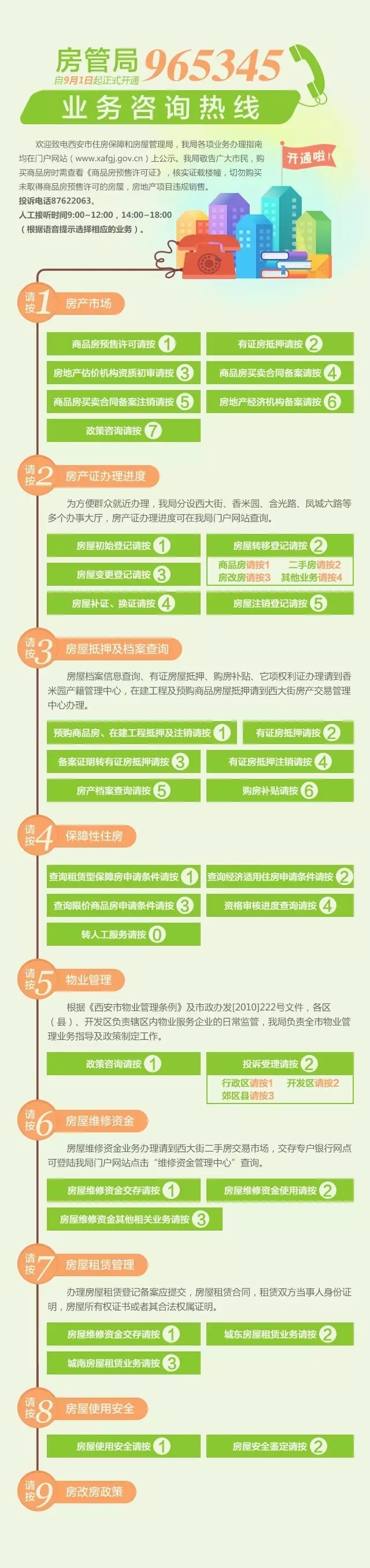我局自9月1日起正式開通“965345”服務(wù)熱線,為市民提供語音咨詢、政策和業(yè)務(wù)咨詢、舉報投訴等信息咨詢服務(wù),人工接聽時間為9:00—12:00,14:00—18:00。